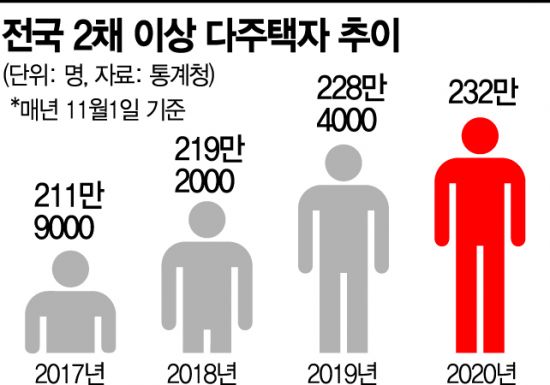 전문가들은 다주택 양도세에 대한 중과를 없애는 파격적인 인하책이 나와야 시장에 매물이 나올 것으로 보고 있다. 정부는 2019년 12·16 대책을 통해 6개월 간 한시적으로 조정대상지역내 10년 이상 보유한 주택을 양도하는 경우 다주택자에 대한 양도세 중과를 폐지한 바 있다. 이 당시 6개월 간 서울 아파트 매물은 6만6000여건에서 8만여건까지 확대됐다. 김 소장은 “주택 하나당 똑같이 세금을 부여하면 되는 문제”라며 “그렇게 하더라도 지금 취득세·보유세가 높기 때문에 사는 사람은 많지 않다”고 말했다.