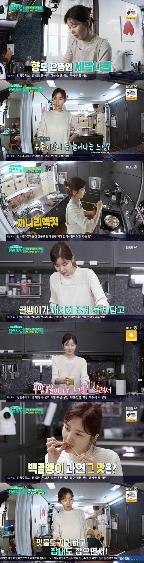이렇게 세발나물전과 백골뱅이 어묵탕으로 박솔미의 봄철 에디션 주안상 컬렉션이 완성된 것. 이때부터 박솔미의 본격 자유부인 타임이 시작됐다. 박솔미는 “남편이 백골뱅이 탕을 너무 좋아해서 남편이랑 같이 먹으면 양이 늘 부족하다”며 “혼자 먹을 수 있을 때 많이 먹어야 한다”고 해 웃음을 자아냈다.