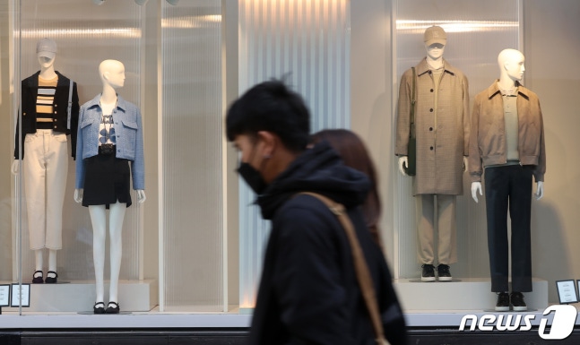 서울 중구 명동 의류매장 쇼윈도가 봄옷으로 꾸며져 있다. 2022.2.27/뉴스1 © News1 조태형 기자
